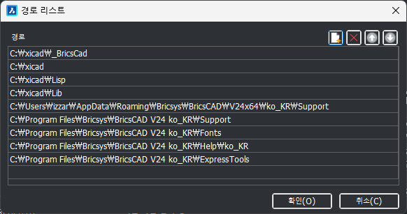 4. 작업경로설정 (XiCAD 설치를 설치하면 자동으로 변경됨, 사용자가 추가할 것만 추가)