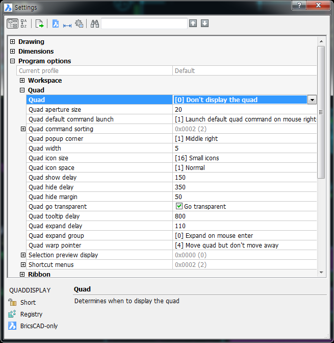 브릭스캐드는 다른 캐드와 설정 화면 등 대화상자의 구성이 이질적이라 초기 설정값을 찾는데 어려움이 많을 수 밖에 없다. 아래 내용은 최소한의 설정값이 어느 위치에 있는지를 정리한 글이다.