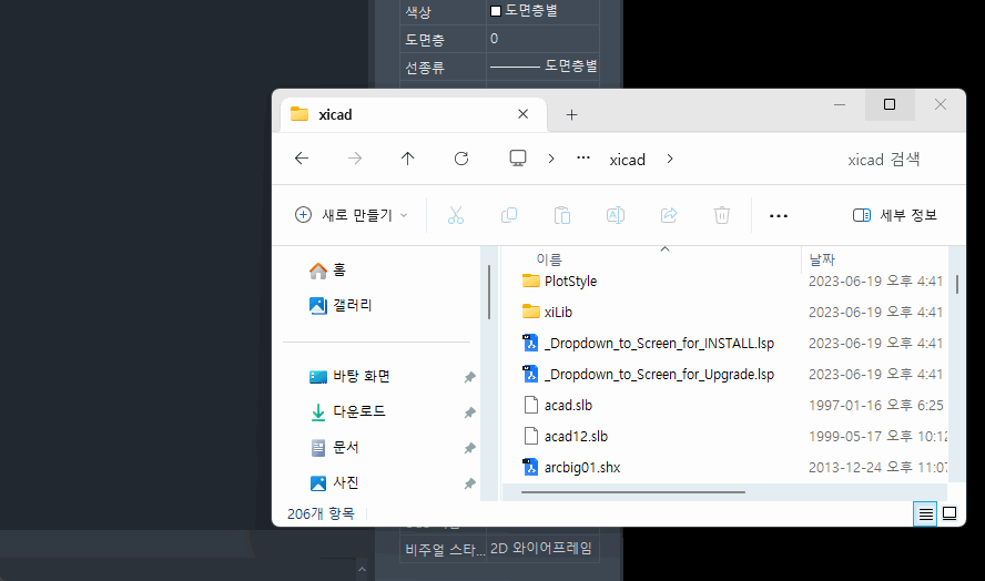 가. 작업파일 경로 : xicad 관련 폴더가 맨 위로 오도록