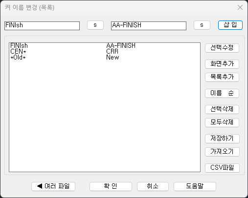 목록을 이용해서 켜이름을 한꺼번에 변경하는 명령어입니다.