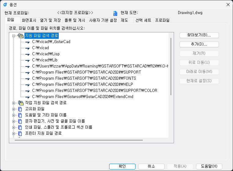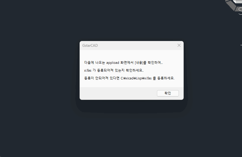 아직까지 GstarCad 에서는 유사한 오류가 없었지만, 오토캐드에서와 같이 보안프로그램 등에 의해 [시작세트에 올려 놓은 xi.fas 파일이 자꾸 없어지는 오류]가 있을 경우,