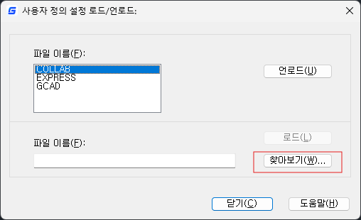 명령창에 [MenuLoad - 찾아보기] 를 하여,
