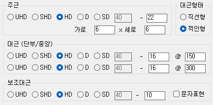주근, 대근, 보조대근의 종류 및 갯수를 입력합니다.