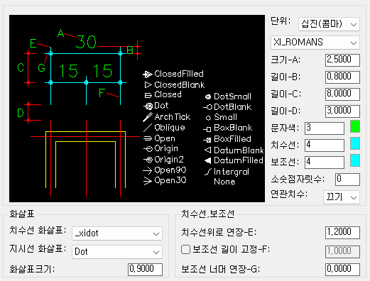 [치수모양 설정]
