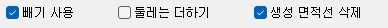 해칭 등의 면적은 면적선을 임의로 생성하여 계산을 하는데, 이 만들어진 면적선을 남길 것이지 삭제할 것이지를 정하는 옵션입니다.