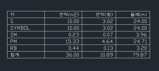 선택 객체의 켜별로 면적을 구분하여 표로 만드는 기능입니다.