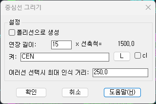 연장길이: 중심선이 객체로 부터의 연장할 길이를 정합니다.