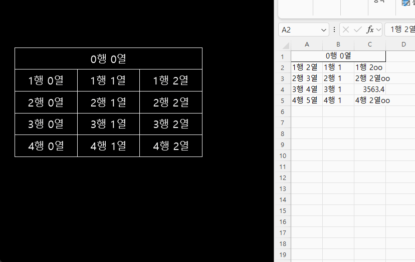 아래와 같이 가져올 엑셀파일의 내용이 있다면...