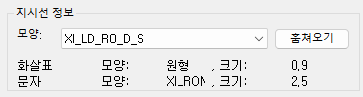 지시선 모양은 현재 도면 설정 중에 하나를 선택할 수도 있고, XiCAD가 제공하는 세가지 모양 중에 하나를 빠르게 선택할 수도 있습니다.