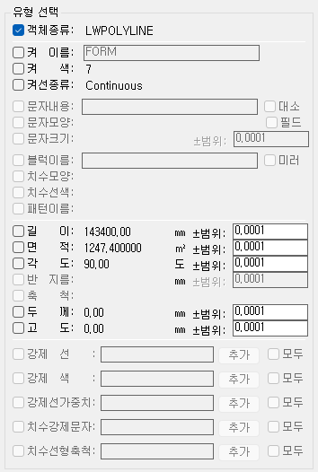 객체를 화면에서 선택을 한 후에, 나타나는 대화상자에서 동일한 조건으로 검색을 할 여러 가지를 입력/선택한 후에 "확인"을 누르면, 조건과 맞는 객체를 찾아서 선택해 줍니다.