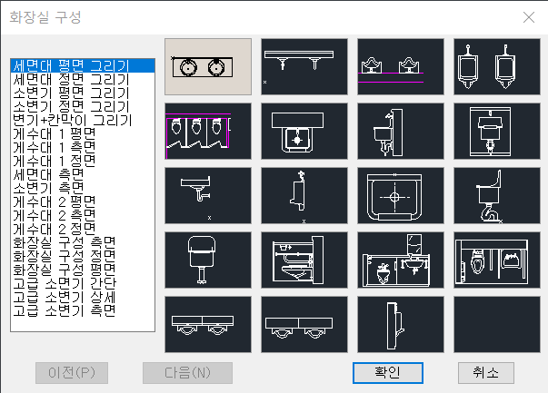 여기에 등록되는 세면기 블럭은 캐드의 "검색경로"에 등록된 폴더에 있어야 합니다.