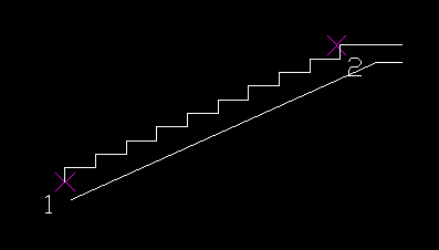 한 단의 너비와 높이는 사용자가 지정한 p1, p2 점에 따라 결정 되며, 슬라브 설정의 [단깊이]는 단의 수직선이 직각이 아닌 돌출되는 형태를 그릴 때 사용됩니다.
