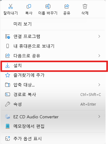 사용자가 탐색기에서 글꼴을 설치할 때, 아래 그림처럼 "설치"를 사용하면, 해당 글꼴은 c:/Windows/Fonts 폴더로 들어가는 것이 아니라.. c:\Users\사용자이름\AppData\Local\Microsoft\Windows\Fonts\ 폴더로 들어가게 되고, 이 경우는 로그인을 한 사용자만 해당 글꼴을 사용할 수 있습니다.