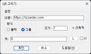 사용하고 싶은 URL을 입력하고 화면에 한 점을 지정하면 아래와 같은 QR 코드가 그려집니다.