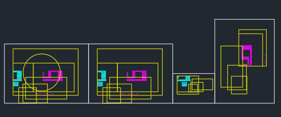 아래 처럼 종이공간 하나에 4장의 도면이 있을 경우..
