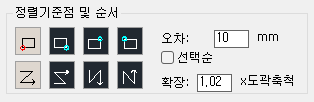 - 오차 : 각 도면의 순서를 정할 때, 이 길이 이내의 오차는 같은 위치로 본다는 의미입니다.
