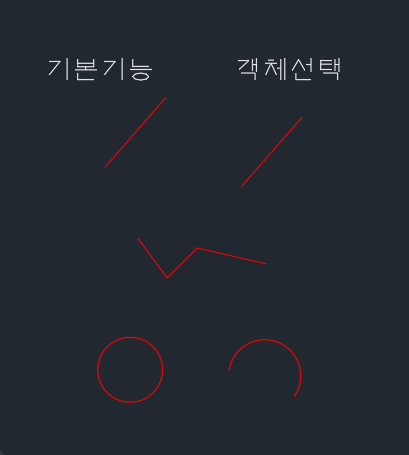 기존객체선택(E) 를 실행할 경우, 선/폴리선/원/호를 선택할 수 있습니다.