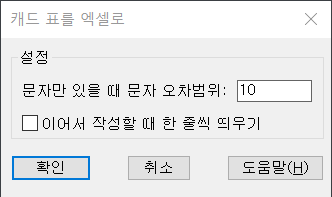 설정(S)에 들어가면, 한 줄에 있는 문자를 인식하는 오차범위를 정할 수 있습니다.