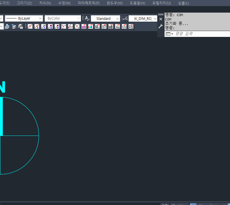 3. 캐드 재 실행 후 [유틸리티 - 열기,닫기 및 설정 - 사용자설정 복원]으로 실행하거나, 명령창에서 xiRestore 실행