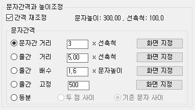 [간격 재조정]을 체크하지 않으면 기존 화면에 있는 문자간 간격을 그대로 유지합니다.