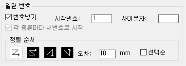 시작번호 : 처음 시작되는 번호를 결정합니다. 다만 도면에 이미 같은 이름의 블럭이 있다면, 해당 블럭의 번호를 피해서 자동으로 번호가 시작됩니다.