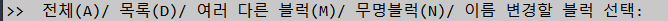 목록(D) : 만들어진 블럭의 목록에 포함된 블럭만 변경이 됩니다.