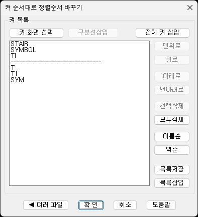 [구분선 상부의 켜 - 목록에 없는 켜 - 구분선 하부의 켜] 로 객체의 순서가 변경됩니다.
