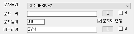 문자모양 : 한번 입력된 문자 모양은 기억이 됩니다. 그러나, 다른 도면에서 해당 문자모양이 없다면 [현재모양]이 기본값이 됩니다. 다른 도면에서도 특정한 문자모양으로 계속 입력을 하기 위해서는 미리 문자모양을 만들어 두어야 합니다.