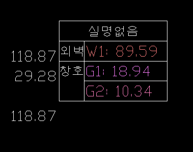 왼쪽의 흰색 글씨는 검산을 위한 합계 숫자로써, Defpoints 켜로 되어 있어 출력되지 않습니다.