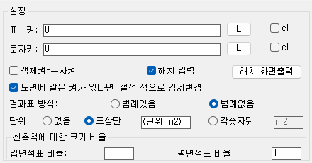 도면에 따라 표의 크기가 조금 작거나, 커질 필요가 있기 때문에 크기 비율 옵션이 있습니다.