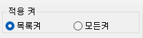 오른쪽 목록창에 등록된 켜를 대상으로 합니다.