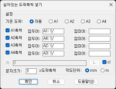 도곽축척이 도곽의 크기에 따라서 자동으로 변화하는 문자를 만드는 명령어입니다.