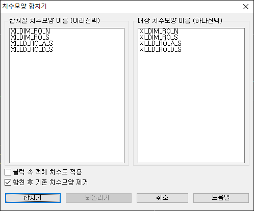 Leader 와 Dimension 은 합칠 때 ( 점의 모양 등이 바뀔 수 있으므로...) 유의하셔요.