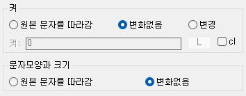 [켜와 문자 모양]