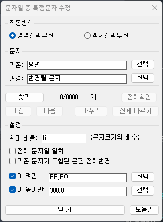 다만, 특정 문자의 교체는 FAR 명령어가 그 적용 범위가 훨씬 넓습니다. (블럭 속 문자, 치수문자 등등 모두 적용 가능)