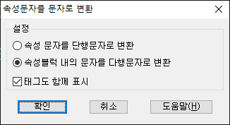 위의 것은 AttDef 문자를 일반 문자로 변환을 하고, 아래 것은 속성블럭 속의 문자를 다행문자로 변환을 하는 옵션입니다.