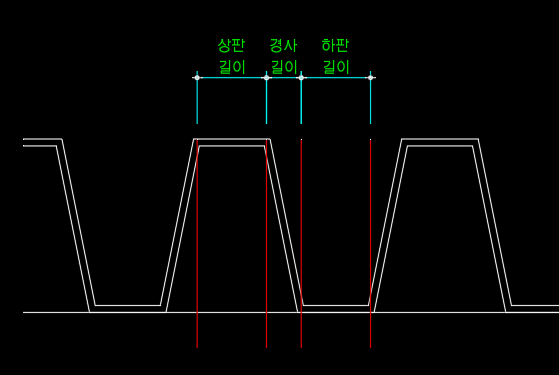 상판, 경사, 하판길이의 정의는 아래와 같습니다.