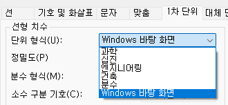 [확인]을 누르고 빠져 나가면, 치수를 입력하게 되는데.. 그 때 입력되는 치수 종류를 선택합니다.