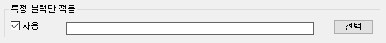 적용할 특정 블럭 목록입니다. 블럭이름을 ","로 구분하여 입력을 해도 되고, 화면에서 선택을 할 수도 있습니다.
