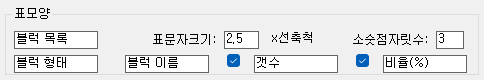 블럭행태, 블럭이름, 갯수, 비율의 순서로 표가 만들어지면, 갯수와 비율은 체크를 통해 생략이 가능합니다.