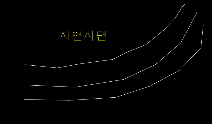 대지 주변 계획사면과 자연사면을 표시하는 명령어입니다.