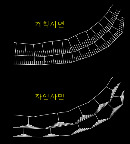 계획 사면 표시와 자연 사면 표시를 구분합니다.